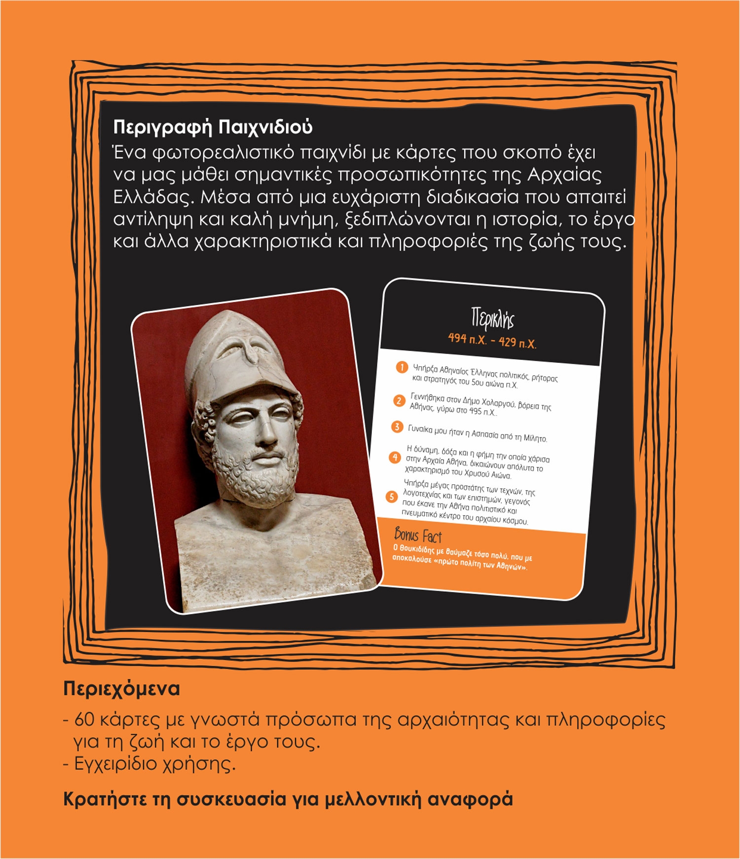 Ένα πρωτότυπο παιχνίδι με κάρτες για τη γνώση της ζωής και του έργου σημαντικών προσωπικοτήτων της Αρχαίας Ελλάδας.