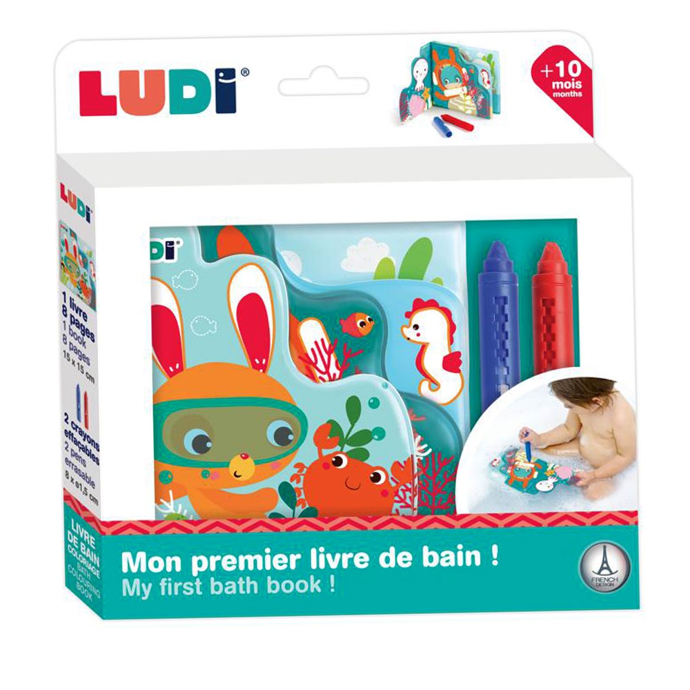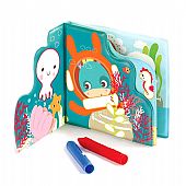 Η ώρα του μπάνιου γίνεται μια πραγματική στιγμή χαλάρωσης και ευχαρίστησης! Βρεφικό παιχνίδι μπάνιου «Βιβλίο ζωγραφικής» από την εταιρεία Ludi. Αποτελείται από ένα πλαστικό βιβλιαράκι με ζωάκια της θάλασσας και 2 ειδικές κηρομπογιές κατάλληλες για το μπάνιο.