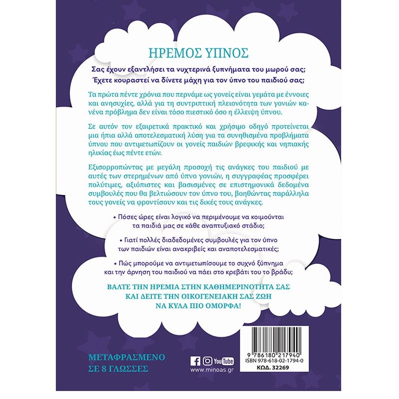 Σε αυτόν τον εξαιρετικά πρακτικό και χρήσιμο οδηγό προτείνεται μια ήπια αλλά αποτελεσματική λύση για τα συνηθισμένα προβλήματα ύπνου που αντιμετωπίζουν οι γονείς παιδιών βρεφικής και νηπιακής ηλικίας έως πέντε ετών.