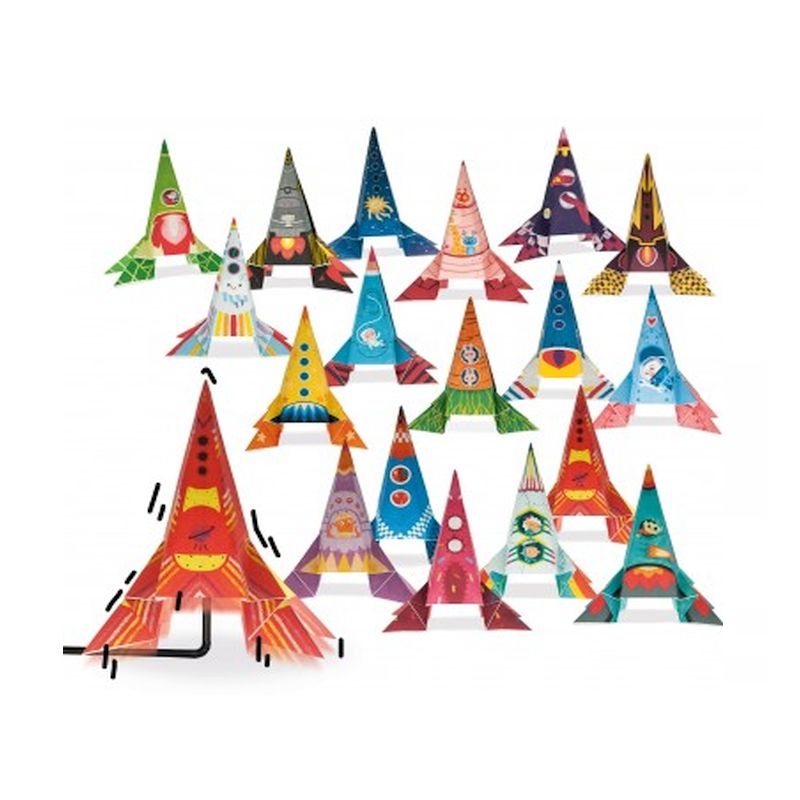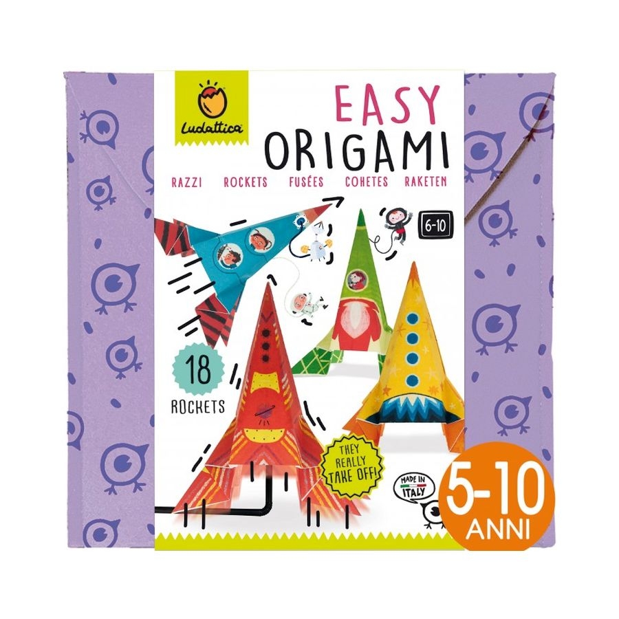 Αυτό το σετ έχει σχεδιαστεί ειδικά για να επιτρέπει στα μικρότερα παιδιά να προσεγγίσουν αυτήν την τέχνη, με απλό και διασκεδαστικό τρόπο! Μπορούν να κατασκευάσουνε και να διακοσμήσουν 18 πρωτότυπους πυραύλους. Το παιδί διπλώνει το χαρτί ακολουθώντας τις εικονογραφημένες οδηγίες και μετά κόβει και κολλάει τα διακοσμητικά σε όποιον πύραυλο θέλει. Μόλις κατασκευάσει όλους του πυραύλους, μπορεί να τους κάνει να πετάξουν για να συνεχίσει να παίζει με τις δημιουργίες του . Ένα παιχνίδι που αναπτύσσει την ικανότητα συγκέντρωσης , τις λεπτές κινητικές δεξιότητες , τη λογική , αλλά και τη φαντασία . Η συσκευασία του παιχνιδιού μπορεί να γίνει ένα πρακτικός φάκελος που ανοίγει και κλείνει με velcro.