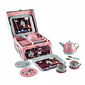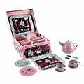 Το σετ περιλαμβάνει: 1 μουσική τσαγιέρα, 2 φλυτζανάκια με τα πιατάκια τους, 2 πιατάκια γλυκού με κουταλάκια, 1 δίσκο σερβιρίσματος και ανθεκτικό όμορφο βαλιτσάκι για να τα αποθηκεύετε και να τα μεταφέρετε!
