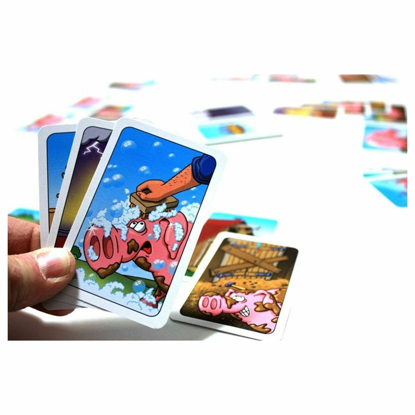 Όλοι στη λάσπη - όπως κάνουν τα χαρούμενα γουρουνάκια! Κάθε παίκτης επιδιώκει τα δικά του γουρούνια να είναι τα πιο βρώμικα, ενώ ταυτόχρονα προσπαθεί να καθαρίσει τα γουρούνια των άλλων παικτών. Ένα χοιροστάσιο θα βοηθήσει πολύ, αφού θα προστατέψει τα ζώα από τις καιρικές συνθήκες.