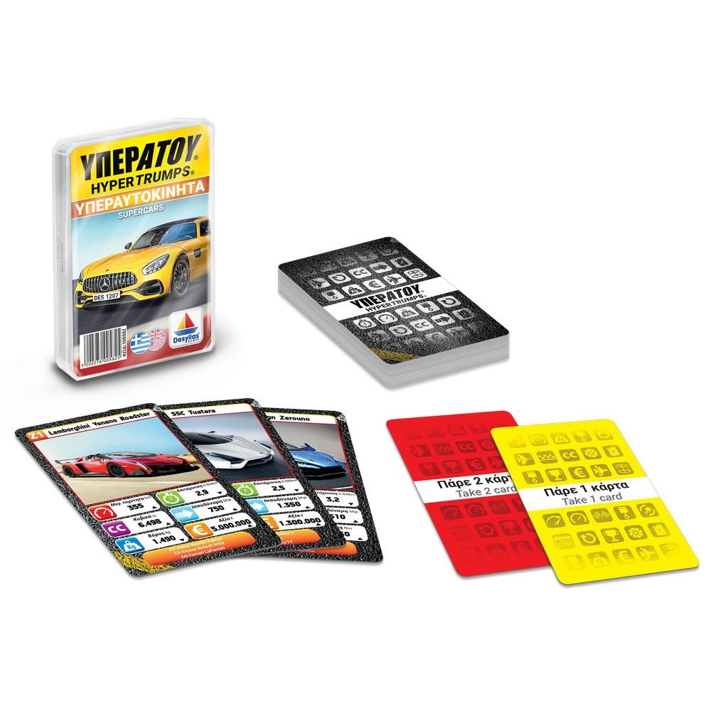 Ετοιμάσου για ένα ταξίδι στο παρελθόν, με τις καινούργιες τράπουλες «ΥΠΕΡΑΤΟΥ™». Διάλεξε χαρακτηριστικό, σύγκρινε το με του αντιπάλου, και κέρδισε την κάρτα! Χρησιμοποίησε έξυπνα την κάρτα ΥΠΕΡΑΤΟΥ και βγες μπροστά! Παίξε και μάθε τα πάντα για τα καλύτερα αυτοκίνητα του κόσμου!