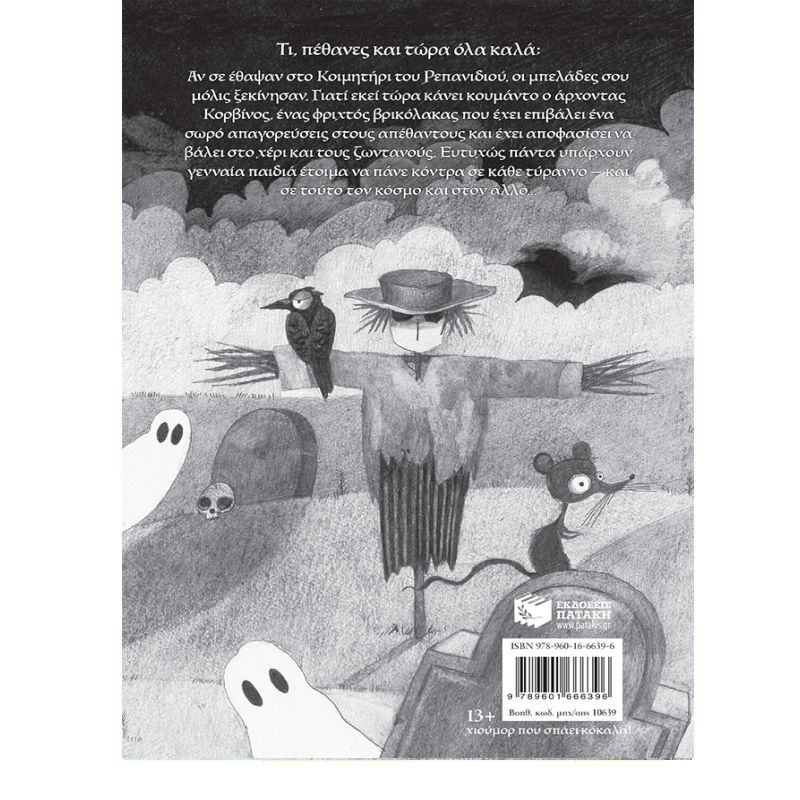 Αν σε έθαψαν στο Κοιμητήρι του Ρεπανιδιού, οι μπελάδες σου μόλις ξεκίνησαν. Γιατί εκεί τώρα κάνει κουμάντο ο άρχοντας Κορβίνος, ένας φριχτός βρικόλακας που έχει επιβάλει ένα σωρό απαγορεύσεις στους απέθαντους και έχει αποφασίσει να βάλει στο χέρι και τους ζωντανούς. Еυτυχώς πάντα υπάρχουν γενναία παιδιά έτοιμα να πάνε κόντρα σε κάθε τύραννο — και σε τούτο τον κόσμο και στον άλλο…