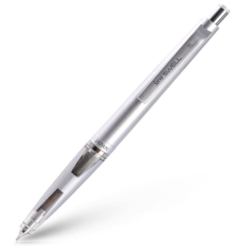 Μηχανικό μολύβι Serve Swell ιαπωνικής κατασκευής, με πολύ ελαφρύ στέλεχος και μαλακή λαβή για να γράφετε άνετα ακόμα και για πολλές ώρες. Διαθέτει πτυσσόμενη γόμα στο πίσω μέρος, η οποία βγαίνει και επανέρχεται στη θήκη περιστρέφοντας το καπάκι και κλιπ για να μπορείτε να το αποθηκεύετε σε τετράδια, σημειωματάρια, τσέπες και κασετίνες.
