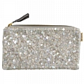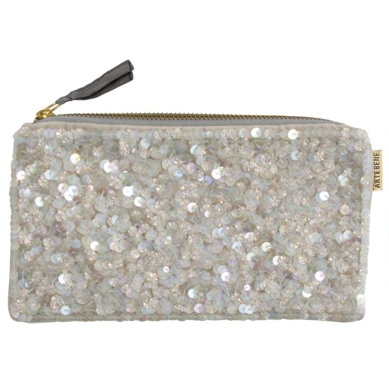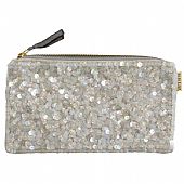 Χειροποίητο τσαντάκι με πούλιες στο μπροστά μέρος και βελουτέ ύφασμα στο πίσω σε nude χρώμα.