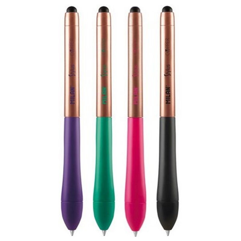 Στυλό Ballpen Stylus Copper 2 σε 1 απο τη Milan. Το στυλό διαθέτει μύτη γραφής στο μπροστινό μέρος η οποία ασφαλίζει περιστρέφοντας το στέλεχος και γραφίδα αφής στο πίσω μέρος, για οθόνες touch (tablets, smartphones, notepads)!
