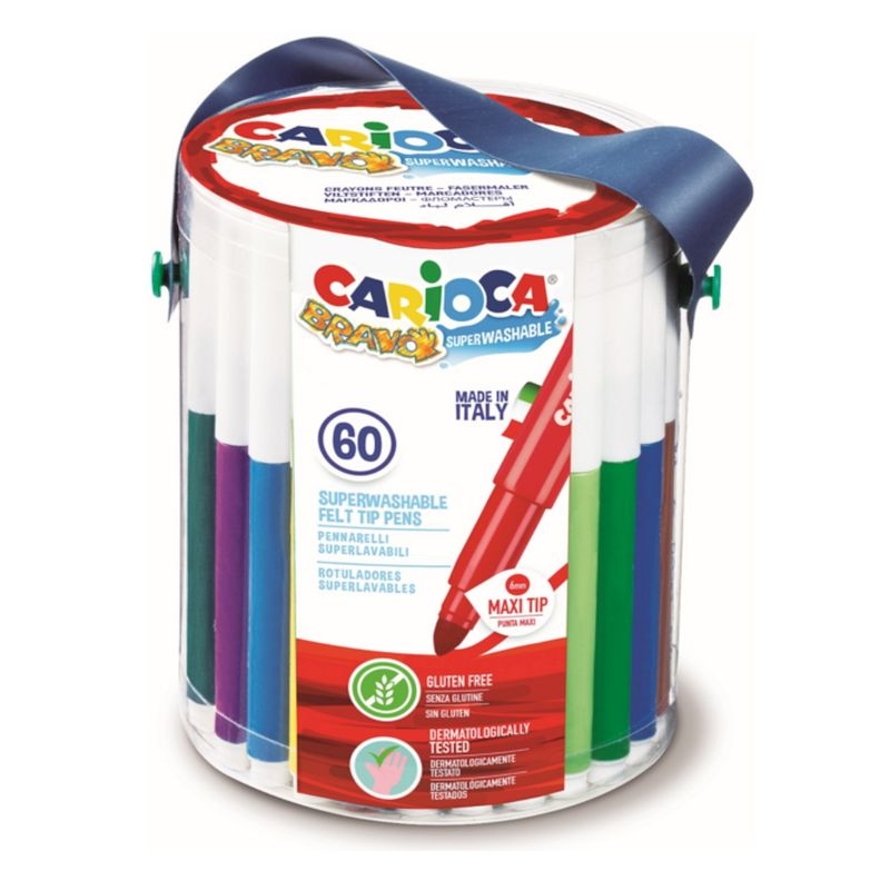60 Μαρκαδόροι Superwashable με Χοντρή Μύτη σε Κουβαδάκι (30χρώματα) - Carioca Bravo