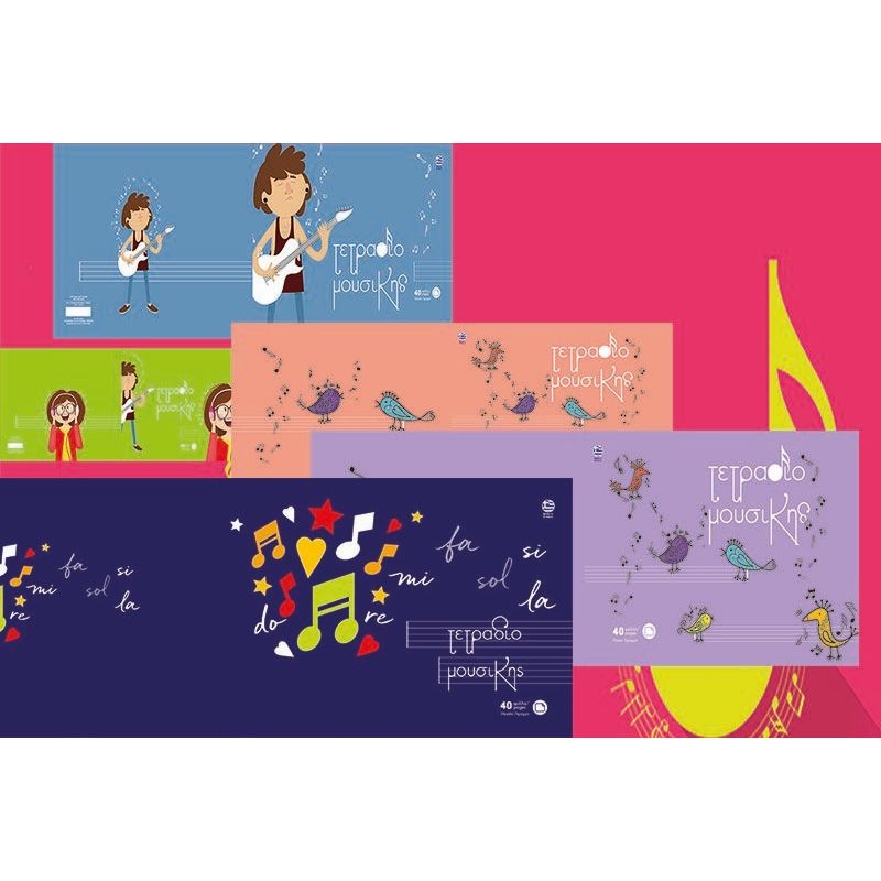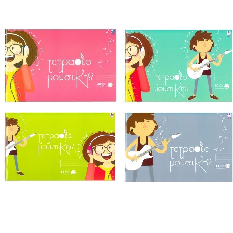 Οριζόντιο τετράδιο μουσικής μεγέθους Β5, με 40 φύλλα μεγάλου πενταγράμμου.