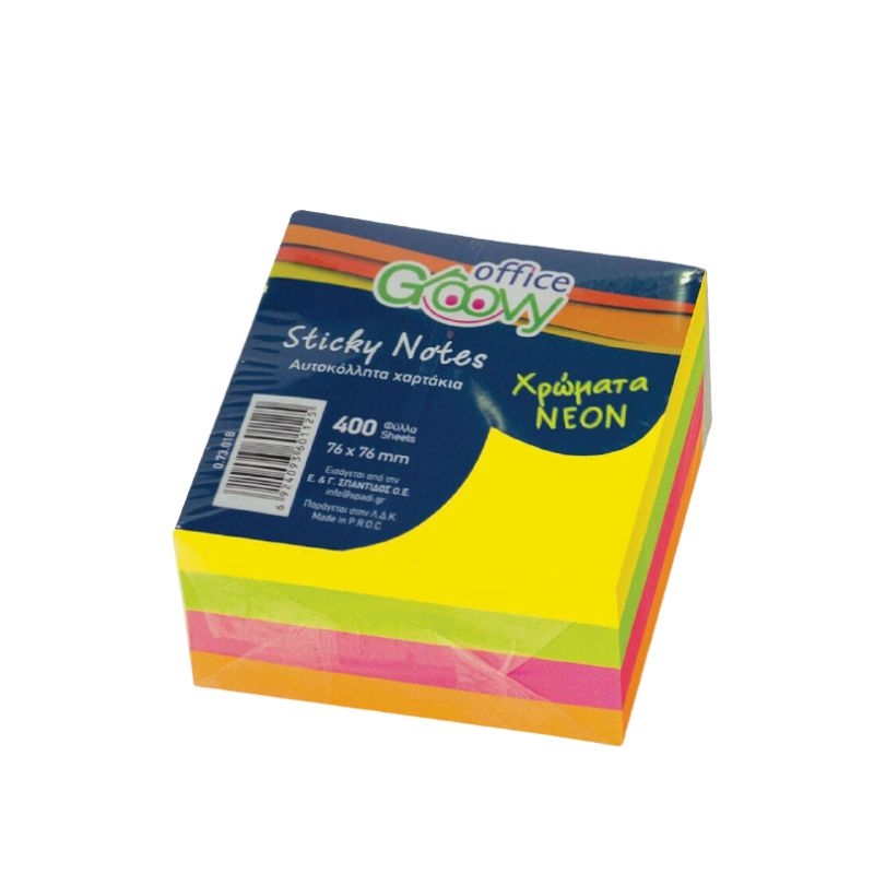 Αυτοκόλλητα Post it κύβος - 400 πολύχρωμα χαρτάκια (7.6x7.6) - Groovy Office