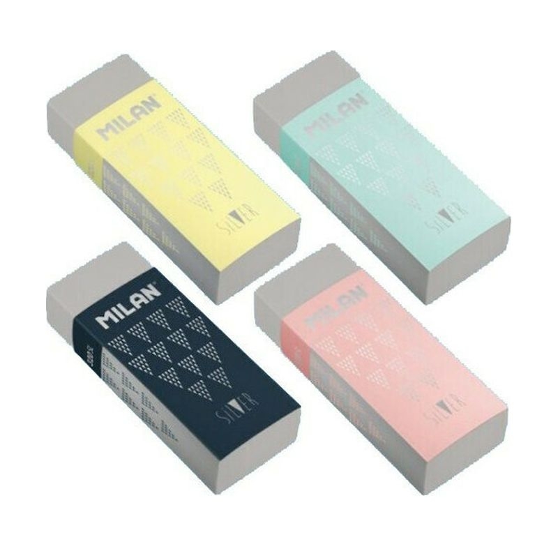 Σβήστρα γκρι Milan από συνθετικό καουτσούκ. Κατάλληλη για ευρύ φάσμα μολυβιών, σε όλα τα είδη χαρτιών, χωρίς να αφήνει μουτζούρες.