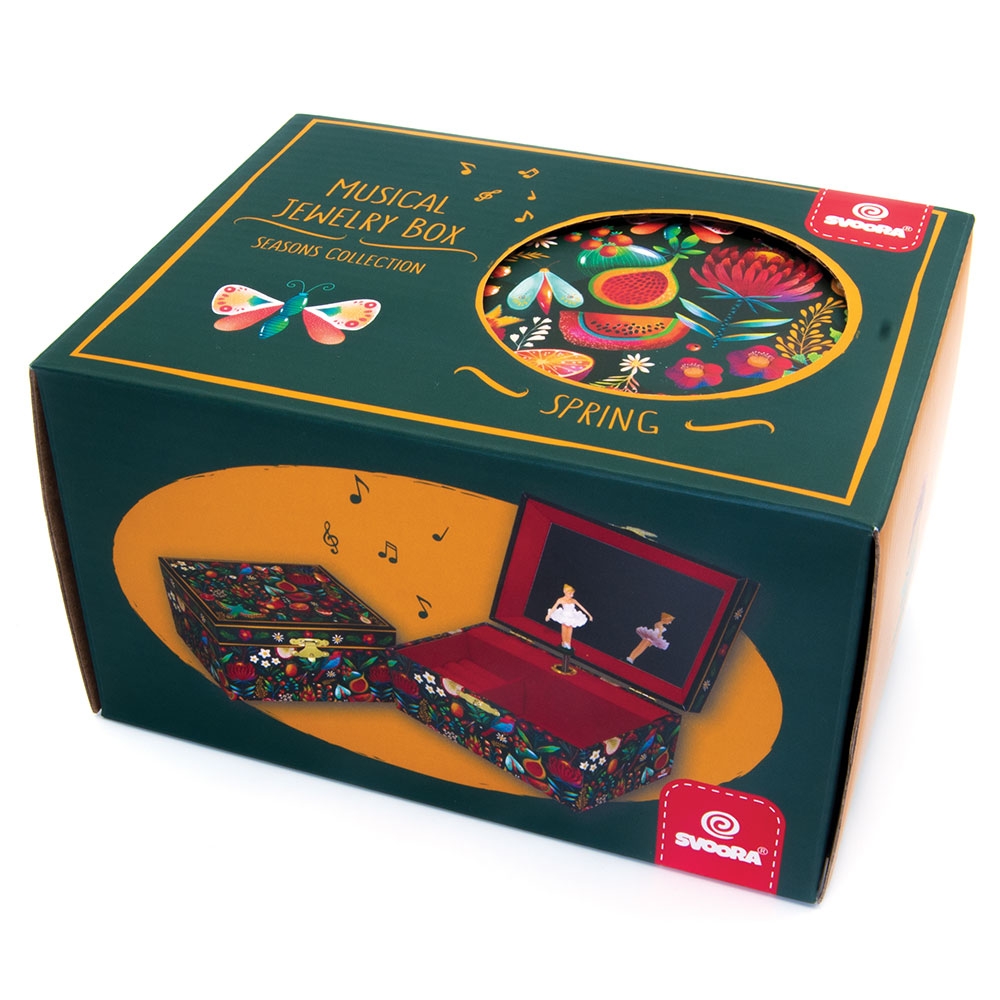 Μουσικό κουτί Μπιζουτιέρα “Seasons” της εταιρίας Svoora! Ξεχωριστά κομμάτια υψηλής αισθητικής που ήρθαν για να μείνουν στην ντουλάπα σας θυμίζοντάς σας τα υπέροχα χρόνια της νιότης! Ο ιδιαίτερος σχεδιασμός τους καθώς και ο μουσικός μηχανισμός με την μπαλαρίνα, κάνουν αυτά τα μουσικά κουτιά τόσο ξεχωριστά! Διαθέτουν νέο ευρύ καθρέφτη για καλύτερη θέαση και ξεχωριστή θήκη για δαχτυλίδια στο εσωτερικό για αποθήκευση περισσότερων αντικειμένων. Ανανεωμένη εμφάνιση με έντονα χρώματα, που εμπνέει ακόμη περισσότερο για οργάνωση και τακτοποίηση, προσδίδοντας στα κοσμήματά σας την αισθηματική αξία που τους αρμόζει!
