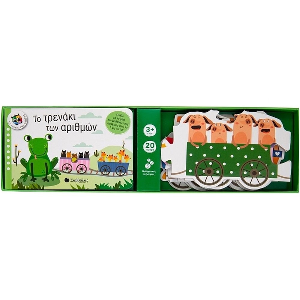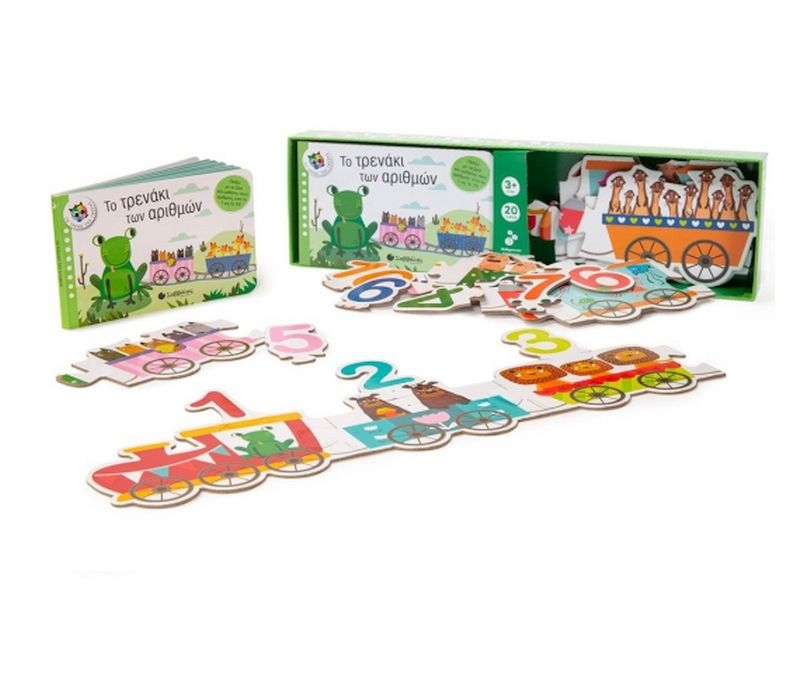 Ανέβα στο τρενάκι των αριθμών και διασκέδασε μαθαίνοντας τους αριθμούς από το 1 ως το 10! Το τρενάκι των αριθμών δίνει την ευκαιρία στα παιδιά να περνούν τον χρόνο τους ευχάριστα και δημιουργικά, ενώ ταυτόχρονα μαθαίνουν να μετρούν τους αριθμούς, ώστε να εξοικειωθούν αργότερα με τα μαθηματικά! Οι εικόνες στα κομμάτια του παζλ είναι ίδιες με τις εικόνες του βιβλίου γιατί η μάθηση συνδυάζεται με το παιχνίδι. Το παζλ εξασκεί τη λεπτή κινητικότητα του παιδιού και το μαθαίνει να βάζει τους αριθμούς στη σωστή σειρά. Οι εικόνες και τα κείμενα του βιβλίου βοηθούν το παιδί να κατανοήσει τους αριθμούς. Οι αριθμοί στα κομμάτια του παζλ είναι ίδιοι με τους αριθμούς στο βιβλίο ως προς το μέγεθος, το σχήμα και το χρώμα για να μπορεί το παιδί να τους αναγνωρίζει και να τους θυμάται εύκολα.