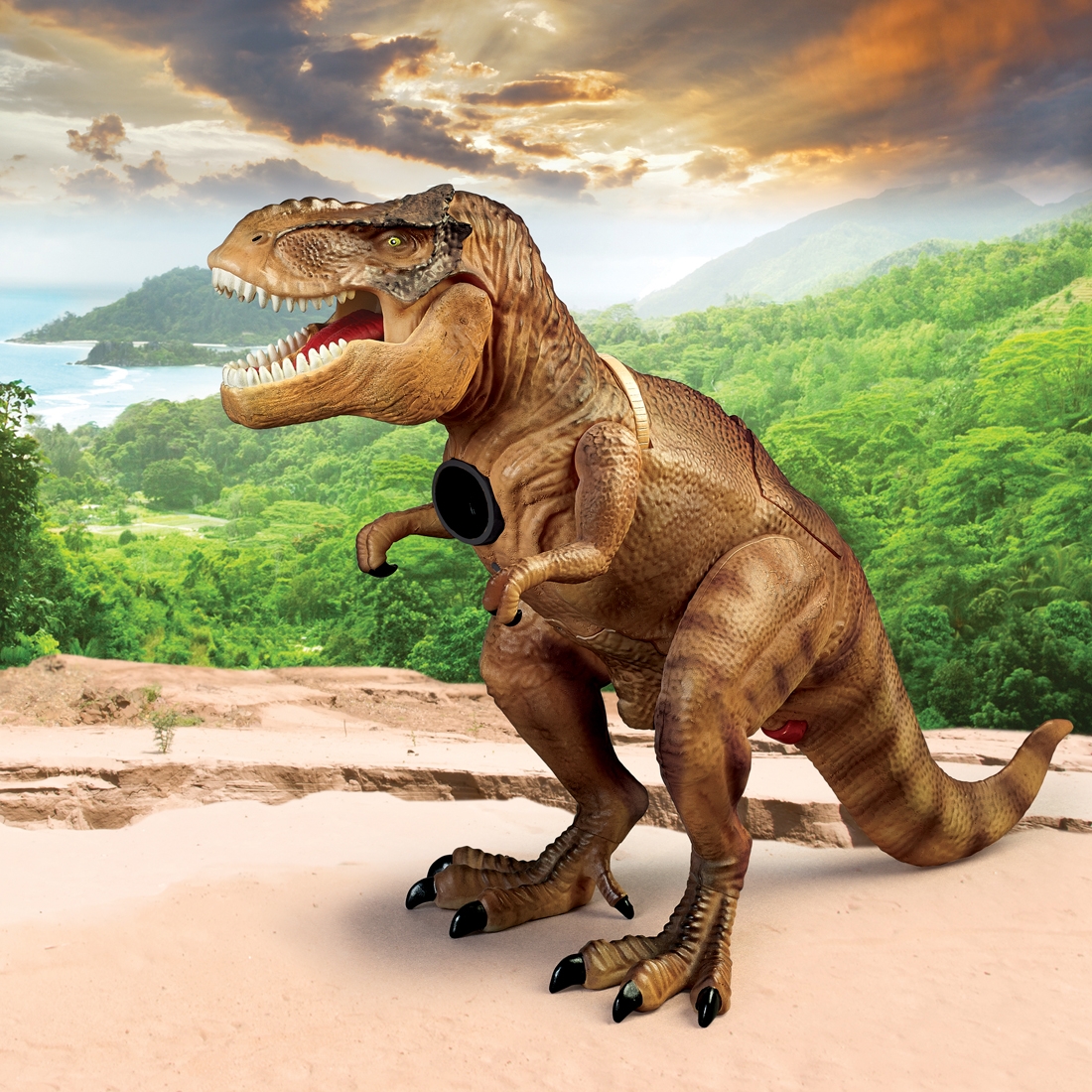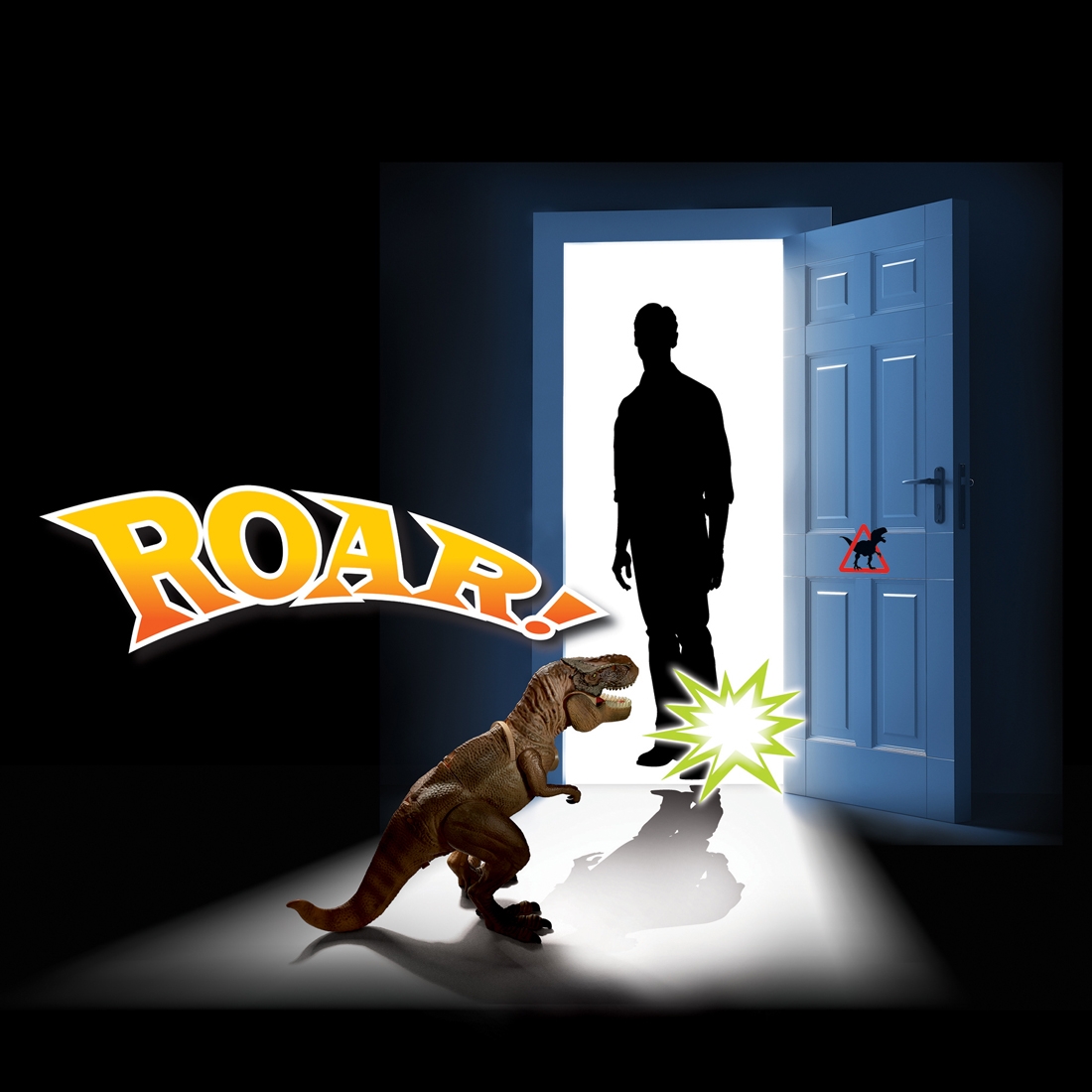 Αυτός ο δεινόσαυρος T-Rex μήκους 40 εκ., όχι μόνο διακοσμεί το δωμάτιό σας, αλλά προβάλλει 24 εικόνες διάστασης μέχρι και ένα μέτρο, από 18 διαφορετικά είδη δεινοσαύρων! Και η διασκέδαση δεν σταματά εκεί, αφού ο T-REX μετατρέπεται και σε φύλακα του δωματίου σας! Διαθέτει ανιχνευτή κίνησης που τον κάνει να ηχεί μόλις ανιχνεύσει οποιαδήποτε κίνηση και δονείται όταν τον σηκώσουν!