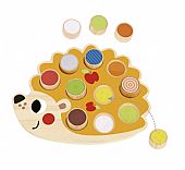 Ένα ιδιαίτερο και πρωτότυπο παιχνίδι με διαφορετικά σφηνώματα σε σχήμα σκατζόχοιρου! Το παιχνίδι αποτελείται από 11 τεμάχια και πιο συγκεκριμένα έναν μεγάλο ξύλινο σκαντζόχοιρο και 10 διαφορετικά σφηνώματα. Ο ξύλινος σκαντζόχοιρος έχει στην πλάτη του υποδοχές με διαφορετικά χρώματα και υφές. Κάθε σφήνωμα αντιστοιχεί σε μία υποδοχή με βάση το χρώμα ή την υφή του σφηνώματος.