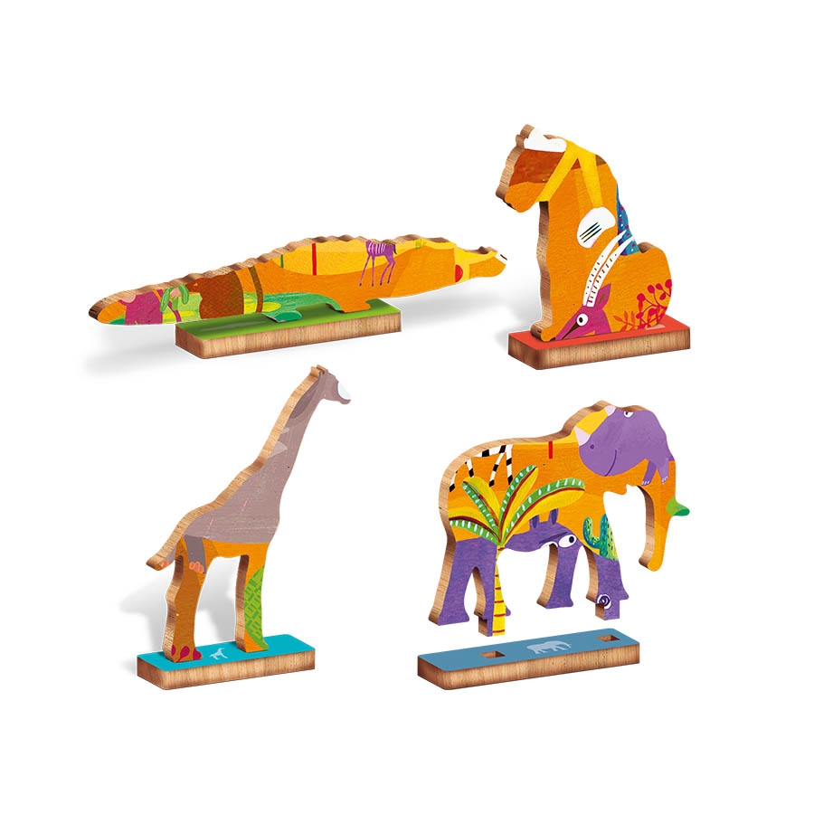 Ένα πρωτότυπο παζλ της Ludattica με θέμα τα ζώα της Σαβάννας, αλλά με διαφορετικό σχήμα από τα συνηθισμένα! Εκτός από τα κομμάτια του παζλ, θα βρείτε και 12 σχήματα ζώων της Σαβάννας, τα οποία μπορούν τα παιδιά να τα τοποθετήσουν στις μικρές τους βάσεις και να συνεχίσουν για πολλή ώρα το παιχνίδι! Είναι σίγουρο οτι τα παιδιά θα εξασκήσουν τη λογική σκέψη τους, τη λεπτή κινητικότητά τους και την οπτικοκινητική τους αντίληψη!