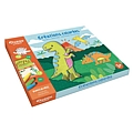 Συναρμολογήστε και ζωγραφίστε τις φιγούρες των δεινοσαύρων και χρησιμοποιήστε τα στένσιλ για να δημιουργήσετε μοναδικές σκηνές με φόντο τις όμορφες καρτέλες που περιέχονται στο σετ.