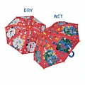 Διάφανη ομπρέλα με μπαστούνι, με θέμα εικόνες από όλο τον κόσμο, που αλλάζει χρώμα όταν έρθει σε επαφή με το νερό. Διαθέτει κλείσιμο με βέλκρο και το εύκολο άνοιγμα ώθησης κρατά τα δάχτυλα ασφαλή.