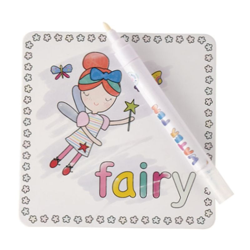 Ζωγραφική με ειδικό μαρκαδόρο νερού σε επαναχρησιμοποιούμενες καρτέλες! Το σετ αποτελείται από δέκα καρτέλες με μονόκερους, νεράιδες, λέξεις και αριθμούς! Τα παιδιά γεμίζουν τον μαρκαδόρο με νερό κι έπειτα ξεκινούν να χρωματίζουν για να αποκαλύψουν κάθε είδους εκπλήξεις. Όταν ο μαρκαδόρος στεγνώσει τον γεμίζετε ξανά και συνεχίζετε να ζωγραφίζετε. Όταν τελειώσετε την ζωγραφική μπορείτε να αποθηκεύσετε τις καρτέλες στην εσωτερική θήκη του κουτιού!