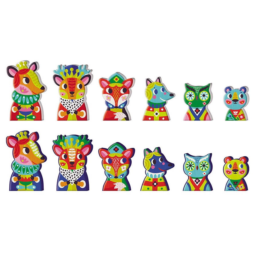 Ανακαλύψτε το παγκοσμίως γνωστό παιχνίδι «Σκάκι» σε μια πρωτότυπη έκδοση! Το πανέμορφο ταμπλό, διακοσμημένο με ζωηρές εικόνες από τη ζωή στο δάσος και τα πολύχρωμα πιόνια σε σχήμα ζώων, θα τραβήξουν τα βλέμματα μικρών και μεγάλων. Με εικονογράφηση από τη διάσημη Καναδή σχεδιάστρια Ηelen Dardik, το κλασσικό αυτό παιχνίδι μεταμορφώνεται και αποκτά άκρως μοντέρνο χαρακτήρα.