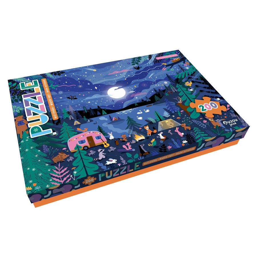 Μικροί και μεγάλοι, όλοι θα λατρέψουν αυτό το πανέμορφο παζλ, της αγαπημένης μας γαλλικής εταιρίας Auzou, με εικονογράφηση από την διακεκριμένη σχεδιάστρια Lucie Brunelli. Συναρμολογήστε το παζλ των 200 κομματιών και αποκαλύψτε την πανέμορφη νυχτερινή σκηνή, με τα ζωάκια του δάσους και τον έναστρο ουρανό με τους λαμπερούς αστερισμούς. Το παζλ αυτό θα κρατήσει απασχολημένα τα παιδιά και θα τα βοηθήσει να αναπτύξουν τη λογική σκέψη και παρατηρητικότητά τους, ενώ ταυτόχρονα είναι μια δραστηριότητα που ενθαρρύνει τον χρόνο περισυλλογής και αυτοσυγκέντρωσης.