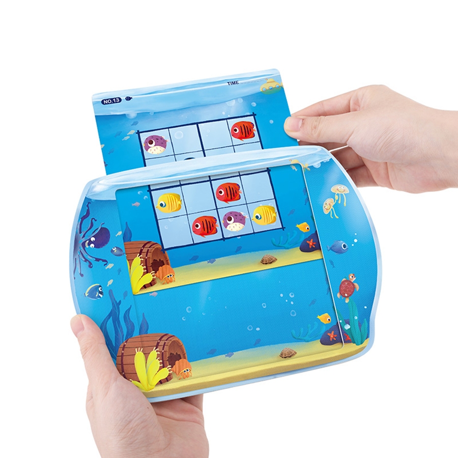 Το πολύ δημοφιλές παιχνίδι παζλ Sudoku σε μία όμορφη διασκευή για μικρά παιδιά! Στο κλασικό παιχνίδι ο παίκτης πρέπει να εισάγει αριθμούς στα κενά κουτάκια, σύμφωνα με τους αριθμούς που έχει το κάθε ταμπλό και πρέπει να διασφαλίσει ότι σε όλες τις οριζόντιες και κάθετες στήλες, κάθε αριθμός υπάρχει μόνο 1 φορά. Στο συγκεκριμένο επιτραπέζιο, τα παιδιά μπαίνουν στη λογική του Sudoku χρησιμοποιόντας τις εικόνες-θησαυρούς αντί για αριθμούς. Yπάρχουν 3 επίπεδα δυσκολίας και 6 είδη ψαριών ΄Όταν το παιδί έχει κατακτήσει τη λογική του παιχνιδιού μπορεί να χρησιμοποιήσει τις κάρτες με τους αριθμούς ανεβάζοντας το επίπεδο δυσκολίας! Ένα παιχνίδι με το οποίο εξασκείται σημαντικά η παρατηρητικότητα, η συγκέντρωση, η αποτελεσματικότητα και η λογική σκέψη.