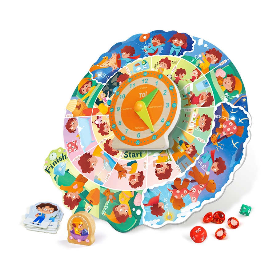 Όλοι οι παίκτες πρέπει να βοηθήσουν τον ταξιδιώτη του χρόνου για ένα μονοήμερο ταξίδι. Αυτό το παιχνίδι βοηθά τα παιδιά να μάθουν τη δομή του ρολογιού και να καταλάβουν πώς λειτουργούν οι ώρες και τα λεπτά. Βοηθά τα παιδιά να γνωρίσουν τη σχέση μεταξύ του χρόνου και της καθημερινής τους ζωής και παράλληλα να ενισχύσουν έννοιες όπως ο αυτοέλεγχος και η αυτοσυγκράτηση. Τέλος, με τα προχωρημένα ζάρια, τα παιδιά μπαίνουν στη διαδικασία υπολογισμού του χρόνου αλλά και να ξεχωρίζουν τη μία ώρα από τη μισή ώρα και ούτω καθ' εξής.