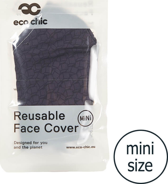 Παιδική μάσκα που αποτελείται από 100% ανακυκλώσιμο υλικό, ενώ το εσωτερικό τους, που έρχεται σε επαφή με το πρόσωπο είναι βαμβακερό. Οι μάσκες Eco Chic διαθέτουν κατάλληλο σχεδιασμό για καλή εφαρμογή στο στόμα και τη μύτη. Οι μάσκες διαθέτουν δύο ρυθμιζόμενους βρόχους αυτιών, προσφέροντας ασφαλή εφαρμογή που παράλληλα βοηθά και στην αποφυγή θολώματος των γυαλιών. Για επιπλέον ασφάλεια κάθε μάσκα διαθέτει εσωτερικές θήκες ώστε να εφαρμόζουν πρόσθετα προστατευτικά φίλτρα (αυτά δεν περιλαμβάνονται στη συσκευασία).H μάσκα πλένεται στο πλυντήριο στους 60 βαθμούς.