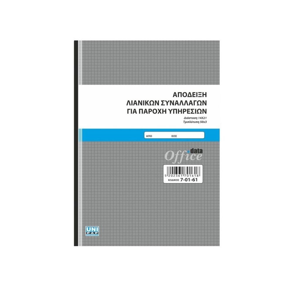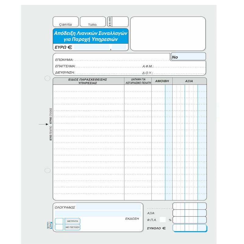 Έντυπο αποδείξεων λιανικών συναλλαγών για παροχή υπηρεσιών από την Uni Pap. με ΦΠΑ , τριπλότυπο με αυτογραφικό έντυπο που δεν χρειάζεται καρμπόν.