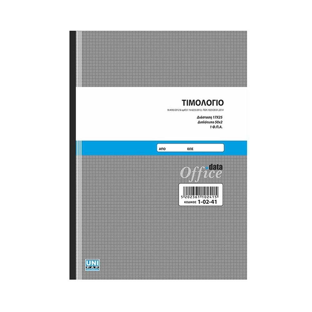 Τιμολόγιο με διπλότυπο αυτογραφικό χαρτί (1 πρωτότυπο και 1 αντίγραφο), με 1 συντελεστή ΦΠΑ από την Uni Pap.
