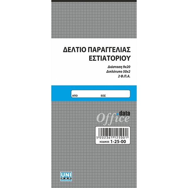 Μπλοκ παραγγελίας εστιατορίου - Διπλό (9x20) - Unipap