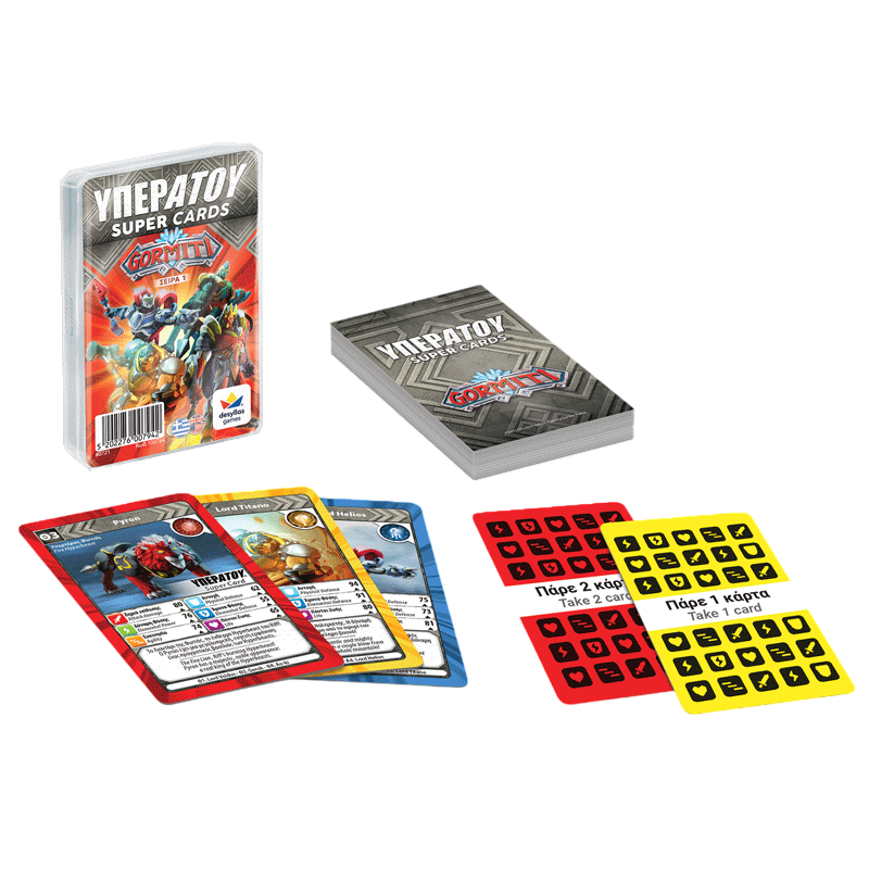 Ετοιμάσου για ένα ταξίδι στο παρελθόν, με τις καινούργιες τράπουλες «ΥΠΕΡΑΤΟΥ™». Διάλεξε χαρακτηριστικό, σύγκρινε το με του αντιπάλου, και κέρδισε την κάρτα! Χρησιμοποίησε έξυπνα την κάρτα ΥΠΕΡΑΤΟΥ και βγες μπροστά! Παίξε και μάθε τα πάντα για τους Gormiti!