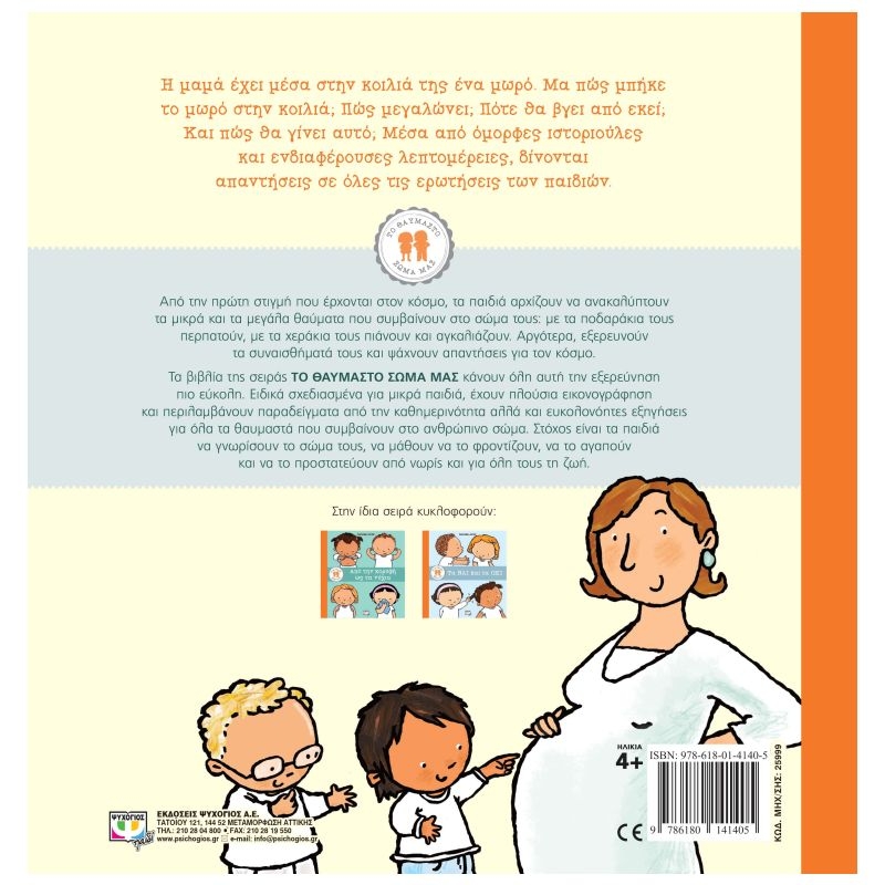 Τα βιβλία της σειράς ΤΟ ΘΑΥΜΑΣΤΟ ΣΩΜΑ ΜΑΣ κάνουν όλη αυτή την εξερεύνηση πιο εύκολη. Ειδικά σχεδιασμένα για μικρά παιδιά, έχουν πλούσια εικονογράφηση και περιλαμβάνουν παραδείγματα από την καθημερινότητα αλλά και ευκολονόητες εξηγήσεις για όλα τα θαυμαστά που συμβαίνουν στο ανθρώπινο σώμα. Στόχος είναι τα παιδιά να γνωρίσουν το σώμα τους, να μάθουν να το φροντίζουν, να το αγαπούν και να το προστατεύουν από νωρίς και για όλη τους τη ζωή.