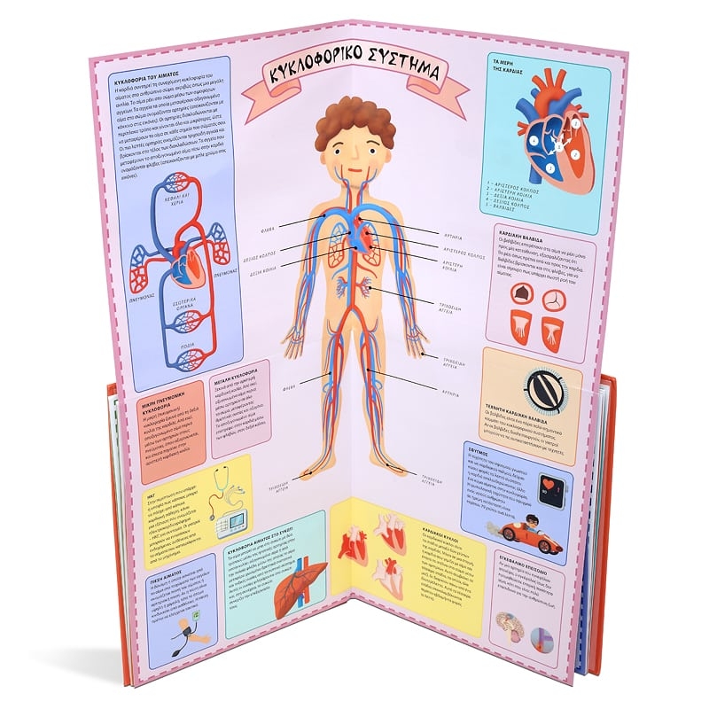 Έξι αναδιπλούμενοι χάρτες παρουσιάζουν στους μικρούς αναγνώστες το ανθρώπινο σώμα με όλα τα όργανα και τις λειτουργίες τους. Οι μεγάλες εικόνες δείχνουν τα βασικά μέρη του ανθρώπινου σώματος, το κυκλοφορικό σύστημα, το νευρικό σύστημα, το μυϊκό σύστημα, το ερειστικό σύστημα και τα εσωτερικά όργανα, με τρόπο εύληπτο και κατανοητό.