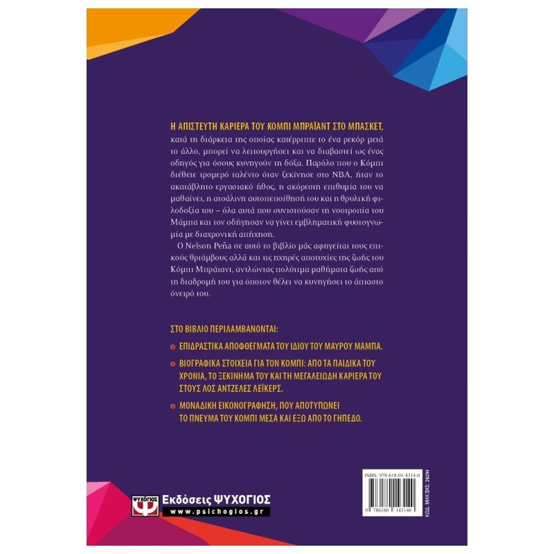 Ο Nelson Peña σε αυτό το βιβλίο μάς αφηγείται τους επικούς θριάμβους αλλά και τις ηχηρές αποτυχίες της ζωής του Κόμπι Μπράιαντ, αντλώντας πολύτιμα μαθήματα ζωής από τη διαδρομή του για όποιον θέλει να κυνηγήσει το άπιαστο όνειρό του.