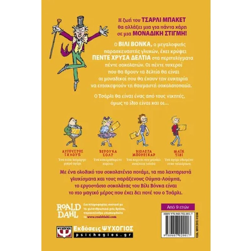 Η ζωή του ΤΣΑΡΛΙ ΜΠΑΚΕΤ θα αλλάξει μια για πάντα χάρη σε μια ΜΟΝΑΔΙΚΗ ΣΤΙΓΜΗ! Ο ΒΙΛΙ ΒΟΝΚΑ, ο μεγαλοφυής παρασκευαστής γλυκών, έχει κρύψει ΠΕΝΤΕ ΧΡΥΣΑ ΔΕΛΤΙΑ στα περιτυλίγματα πέντε σοκολατών. Οι πέντε τυχεροί που θα βρουν τα δελτία θα είναι οι μοναδικοί που θα έχουν την ευκαιρία να επισκεφτούν τη θαυμαστή σοκολατοποιία. Ο Τσάρλι θα είναι ένας από τους νικητές, όμως το ίδιο είναι και οι…ΑΥΓΟΥΣΤΟΣ ΓΚΛΟΥΠ – Ένα πολύ λαίμαργο μικρό αγόρι
