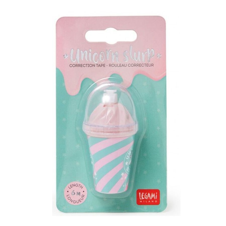 Διορθωτικό σε σχέδιο παγωτό unicorn, με ταινία μήκους 6 μέτρων και πλάτους 5 χιλιοστών. Σε μέγεθος τσέπης για εύκολη μεταφορά! Μην ανησυχείτε λοιπόν για το αν θα κάνετε λάθος. Χάρη στη διορθωτική ταινία της Legami μπορείτε να διαγράψετε τα λάθη σας. Αυτή η διορθωτική ταινία θα σας κάνει να ξεχωρίζετε!