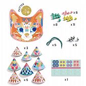 Περιλαμβάνει: 1 βιβλιαράκι με οδηγίες, το ξύλινο πρόσωπο της γατούλας με λεπτομέρειες glitter, 25 χάντρες, 5 κορδονάκια, 5 καμπανάκια, αυτοκόλλητα και 8 χαρτόνια σε σχήμα κώνου.