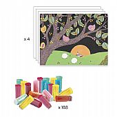 Περιλαμβάνει: 4 εικόνες διαστάσεων 28 x 21 εκ., 168 χρωματιστά αυτοκόλλητα πομ-πομ και ένα εγχειρίδιο οδηγιών.