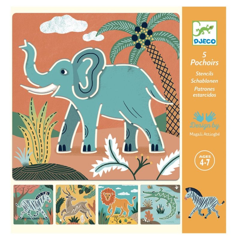 Με τα στένσιλ της εταιρίας Djeco, το παιδί παίρνει τις μπογιές του και σχεδιάζει πιο εύκολα και απλά από ποτέ! Κάθε στένσιλ απεικονίζει ένα διαφορετικό ζωάκι και διαθέτει τις κατάλληλες σχισμές, έτσι ώστε όταν τις ακολουθεί με το μολύβι του, να έχει σαν αποτέλεσμα το περίγραμμα από το συγκεκριμένο ζωάκι. Το μόνο που απομένει είναι να το γεμίσει με χρώματα και φαντασία! Με αυτή την ενασχόληση, αποκτά αυτοπεποίθηση στη ζωγραφική και εξασκεί τη λεπτή κίνησή του και προετοιμάζεται για μελλοντικές ζωγραφικές προκλήσεις.
