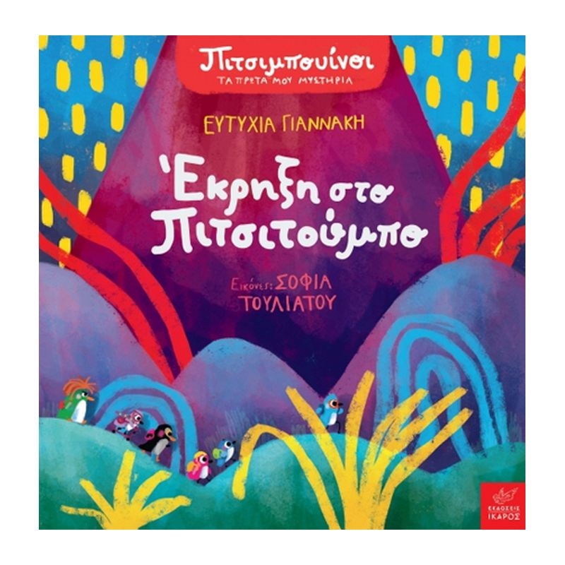 Ο Πίτσι Πίτσου, το νησί των Πιτσιμπουίνων, είναι το πιο ασφαλές, αλλά και το πιο μυστήριο νησί στον κόσμο. Την ώρα της ζωγραφικής, πιτσιλιές αρχίζουν να σκάνε πάνω στα Πιτσιμπουίνια, ενώ το μεγάλο ηφαίστειο του νησιού, το Πιτσιτούμπο, βρυχάται. Ο Μικρός Μπλε, ο μοναδικός ντετέκτιβ του νησιού, βρίσκεται μπροστά στο μεγάλο μυστήριο των χρωμάτων. Οι πιτσιλιές γίνονται τεράστιες και καλύπτουν σιγά σιγά τα σπίτια και την πλατεία του χωριού, ενώ ο ένοχος παραμένει άφαντος. Σύντομα, τα Πιτσιμπουίνια θα διαπιστώσουν ότι για να λύσουν το μυστήριο δεν αρκεί να επιστρατεύσουν όλο το θάρρος τους, που τα οδηγεί στην καρδιά του ηφαιστείου, αλλά χρειάζεται να βουτήξουν για τα καλά τα πτερύγιά τους στο χρώμα.