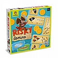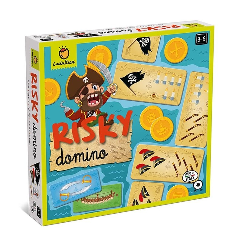 Το κλασσικό παιχνίδι ντόμινο, ανανεωμένο, με μοντέρνο σχεδιασμό και πλούσια εικονογράφηση με θέμα τους πειρατές και άλλα φανταστικά αντικείμενα που χρησιμοποιούν στις περιπέτειές τους! Σκοπός του Risky ντόμινο είναι να αποκτήσετε τον μεγαλύτερο αριθμό μαρκών αλλά για να το κάνετε αυτό πρέπει να χρησιμοποιήσετε στρατηγική και να επιλέξετε σωστά πότε θα παίξετε τα ειδικά ντόμινο που υπάρχουν μέσα στο παιχνίδι. Κάθε ειδικό ντόμινο δημιουργεί και μια νέα συνθήκη στο παιχνίδι. Οπότε προετοιμαστείτε για ένα τρελό παιχνίδι! Το παιχνίδι ενισχύει τη συγκέντρωση των παιδιών και τα βοηθά να αναπτύξουν τη λεπτή κινητικότητα τους και να εξασκήσουν τον οπτικοκινητικό τους συντονισμό.