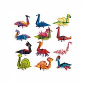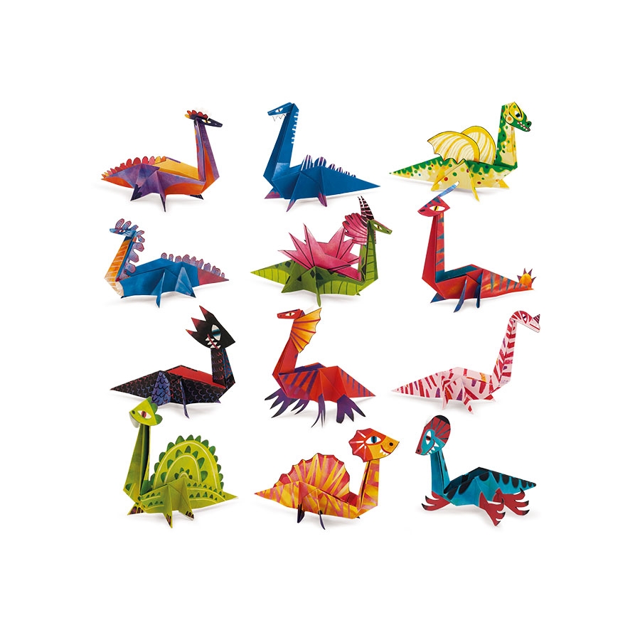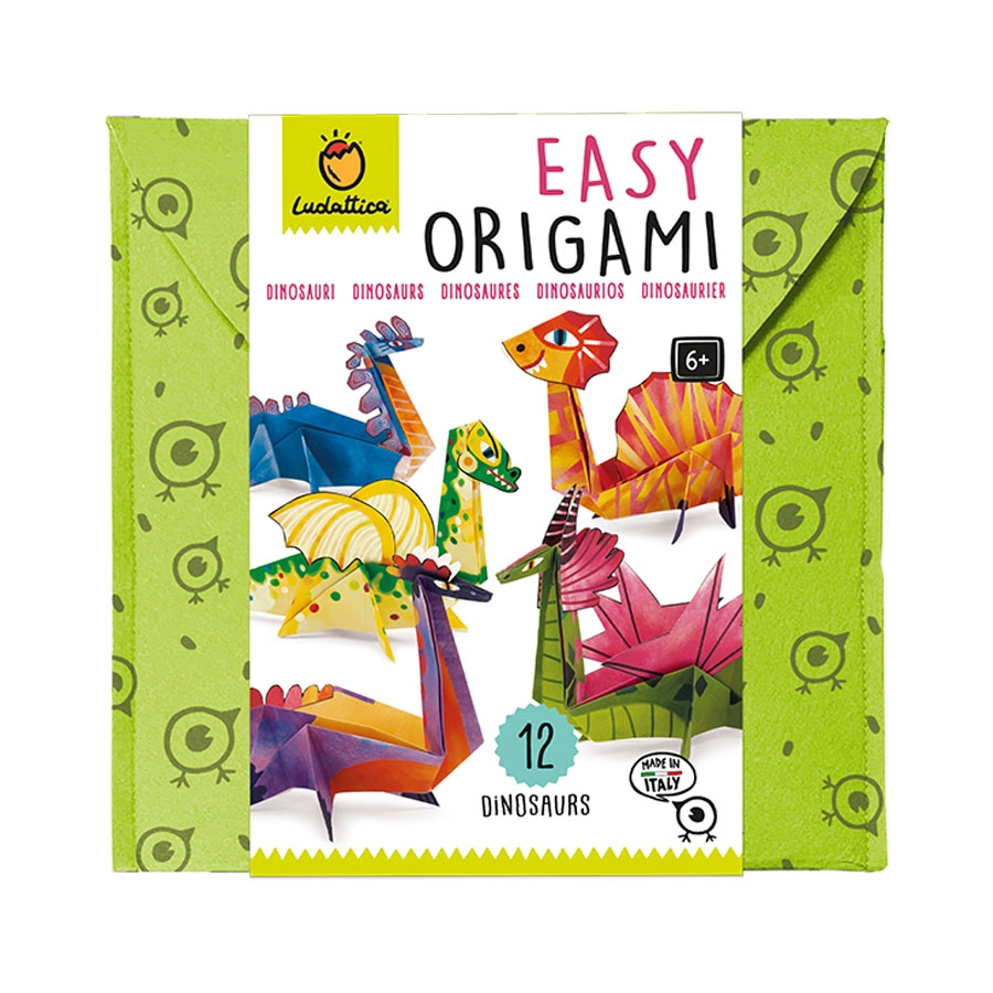 Αυτό το σετ έχει σχεδιαστεί ειδικά για να επιτρέπει στα μικρότερα παιδιά να προσεγγίσουν αυτήν την τέχνη, με απλό και διασκεδαστικό τρόπο! Μπορούν να κατασκευάσουνε και να διακοσμήσουν 12 πρωτότυπους και πολύχρωμους δεινόσαυρους . Το παιδί διπλώνει το χαρτί ακολουθώντας τις εικονογραφημένες οδηγίες και μετά κόβει και κολλάει τα διακοσμητικά σε κάθε δεινόσαυρο. Μόλις κατασκευάσει όλους τους δεινόσαυρους μπορεί να συνεχίσει να παίζει με τις δημιουργίες του . Ένα παιχνίδι που αναπτύσσει την ικανότητα συγκέντρωσης , τις λεπτές κινητικές δεξιότητες , τη λογική , αλλά και τη φαντασία . Η συσκευασία του παιχνιδιού μπορεί να γίνει ένα πρακτικός φάκελος που ανοίγει και κλείνει με velcro.