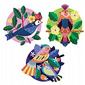 Περιλαμβάνει: 4 καρτέλες με φιγούρες πουλιών, 1 πινέλο, 1 πλαστικό εργαλείο αφαίρεσης προστατευτικής ταινίας, 4 διαφορετικά χρώματα γκλίτερ, 1 σωληνάριο με χρωματιστά στρας και 1 βιβλιαράκι οδηγιών.