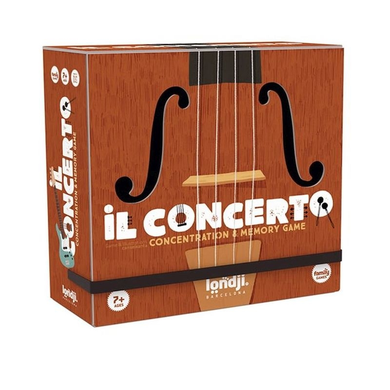 Μια φορά κι έναν καιρό … υπήρχαν μουσικοί, βιολιστές, κιθαρίστες, πιανίστες … και όλοι έψαχναν να μπουν σε ένα συγκρότημα ώστε να μπορούν να παίξουν μουσική! «Το Κονσέρτο», είναι ένα όμορφο παιχνίδι συγκέντρωσης και μνήμης όπου οι παίκτες προσπαθούν να βρουν και να συμπληρώσουν όσο περισσότερες κάρτες συγκροτημάτων μπορούν, για να αναδειχθούν νικητές! Απομνημονεύστε τις θέσεις των καρτών, αναποδογυρίστε τις και ταιριάξτε τα ζευγάρια! Υπάρχουν 2 διαφορετικές εκδοχές - επίπεδα δυσκολίας για να παίξετε το παιχνίδι.