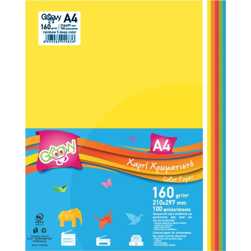 Χαρτί Α4 (160gr/m²) - 5 έντονα χρώματα (100Φ.) - Groovy