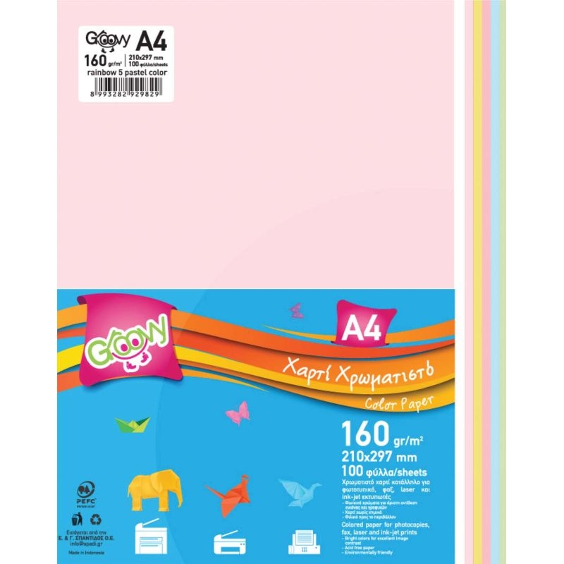Χαρτί Α4 (160gr/m²) - 5 pastel χρώματα (100Φ.) - Groovy