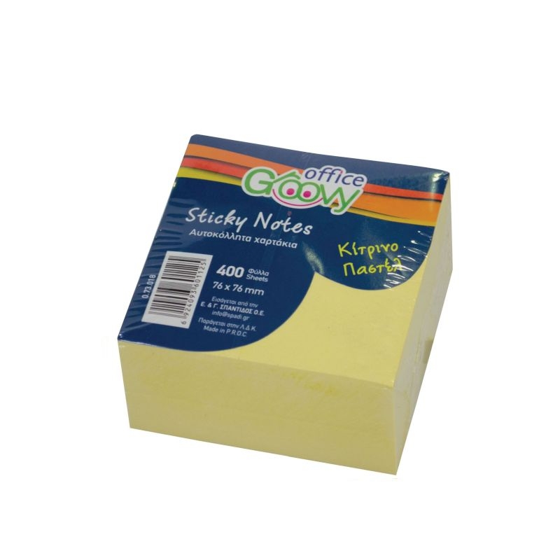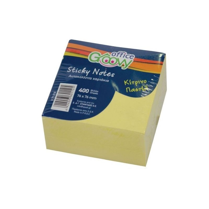 Αυτοκόλλητα Post it κύβος - 400 κίτρινα χαρτάκια (7.6x7.6) - Groovy Office