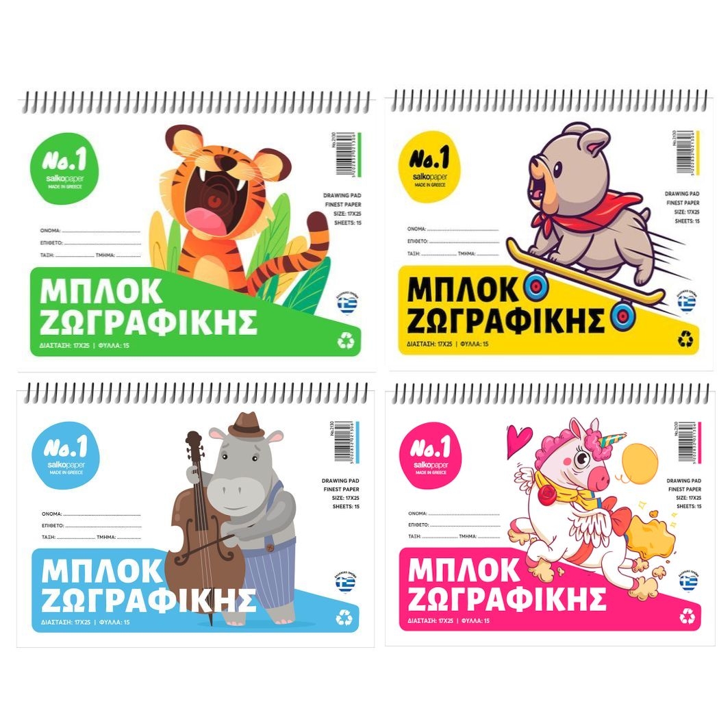 Μπλοκ ζωγραφικής σπιράλ No.1 με 15 φύλλα από την εταιρία Salkopaper με τυπωμένη ετικέτα στο εξώφυλλο για τα στοιχεία του παιδιού σας!