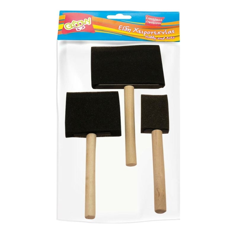 Σετ με τρία Πινέλα με Σφουγγάρι για Decoupage με ξύλινή λαβή και μαύρο σφουγγαράκι. Είναι κατάλληλα για την χρήση σε τεχνοτροπίες όπως decoupage ή scrapbooking. Το σετ περιλαμβάνει τρία διαφορετικά μεγέθη πινέλων 2,5εκ. , 5εκ. και 7εκ.